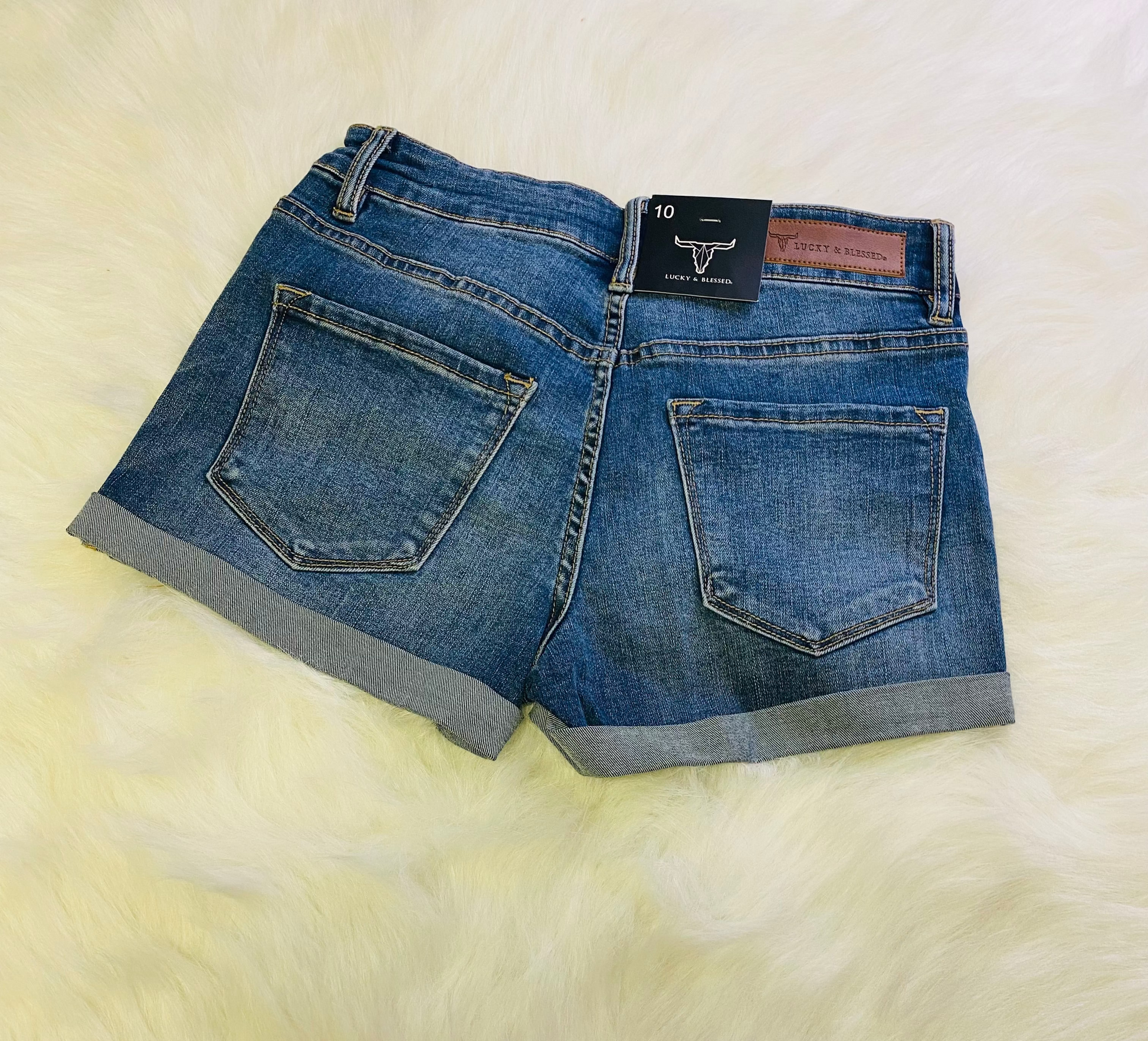 Lucky And Blessed High Rise Denim shorts; Medium Wash