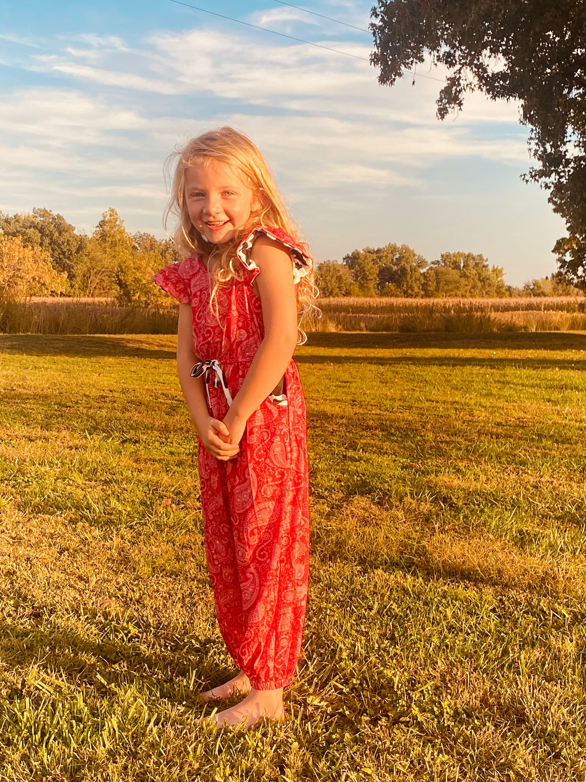 Short Sleeve Red Bandana and Cow Print Jumpsuit