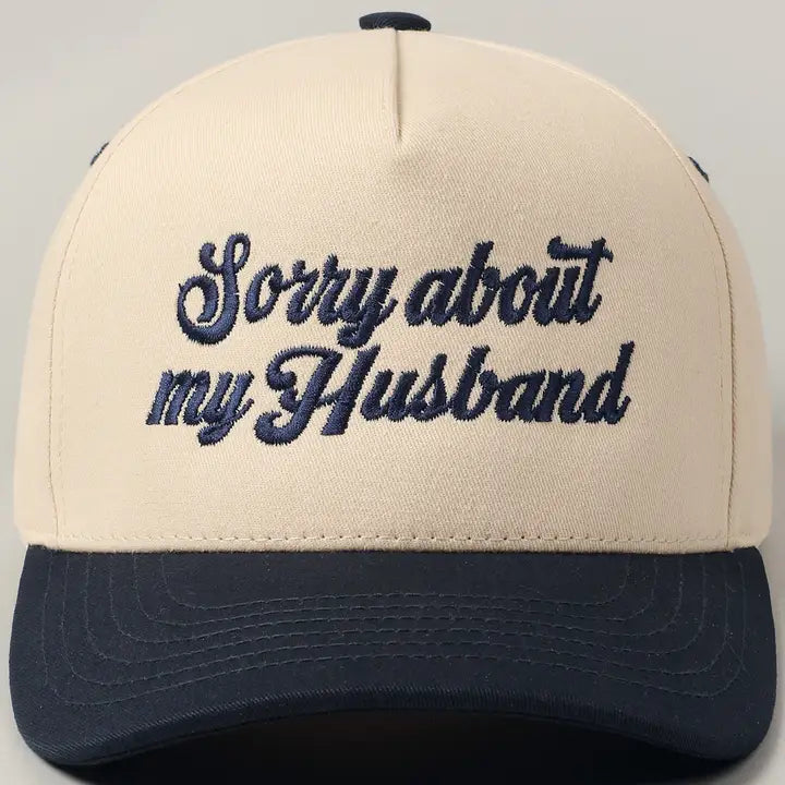 "Sorry About my Husband" Embroidered Trucker Hat- Navy