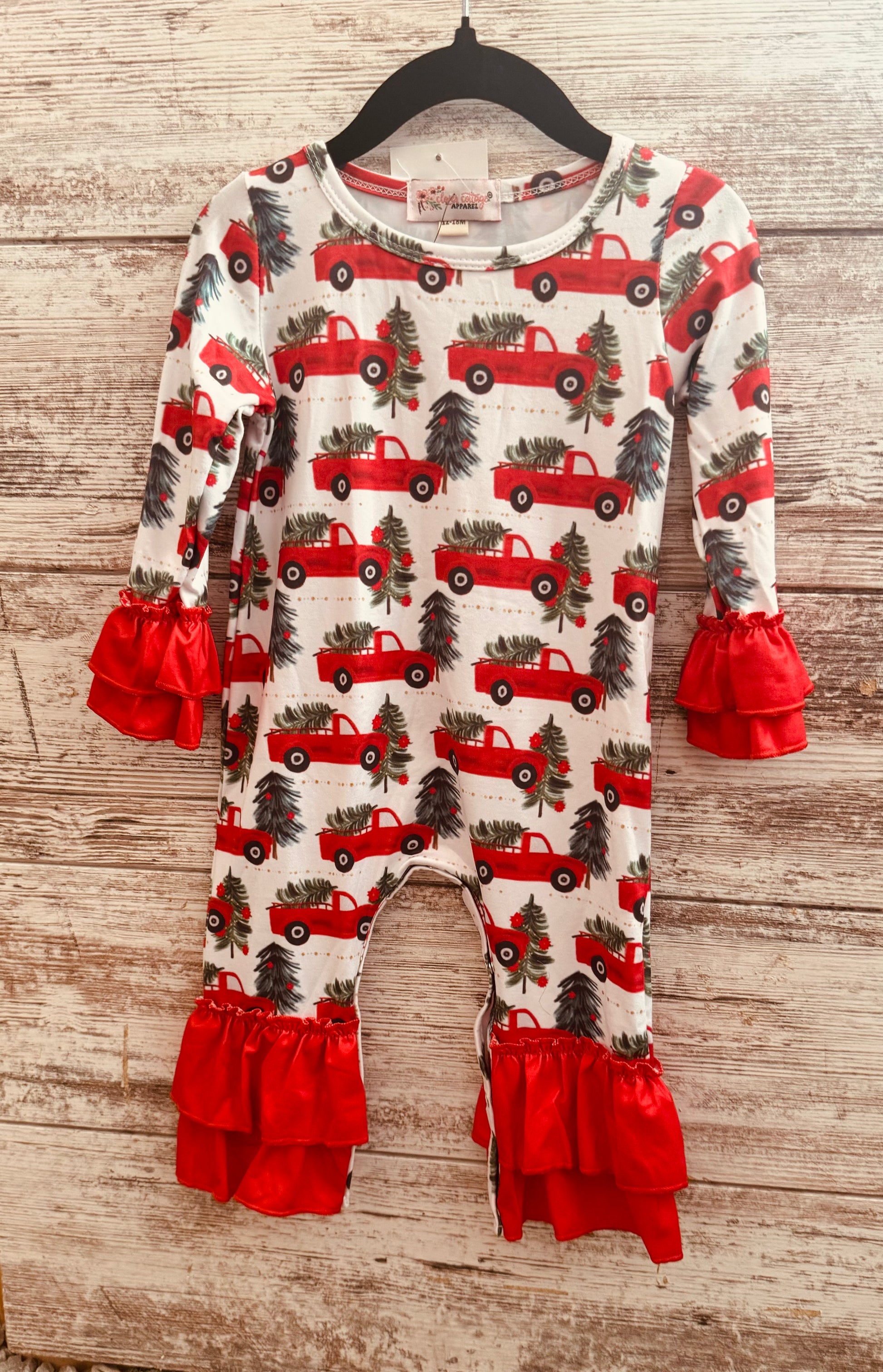 Red Christmas Tree Truck Romper